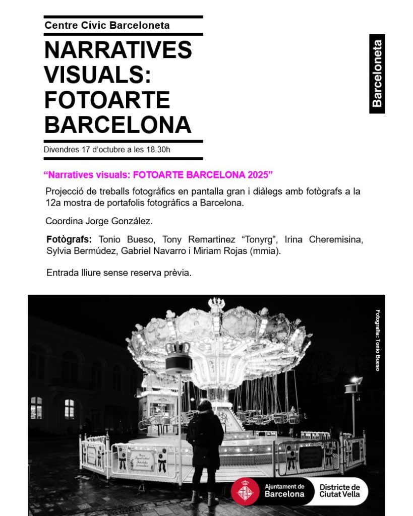 El pasado 17 de octubre  se desarrolló en colaboración con el Centro Cívico Barceloneta el 12.º Encuentro de Portfolios Fotográficos en Barcelona. Cinco fotógrafos y fotógrafas, expositores en la 3era. edición de FotoArte Barcelona 2025 compartieron sus trabajos en este especial.